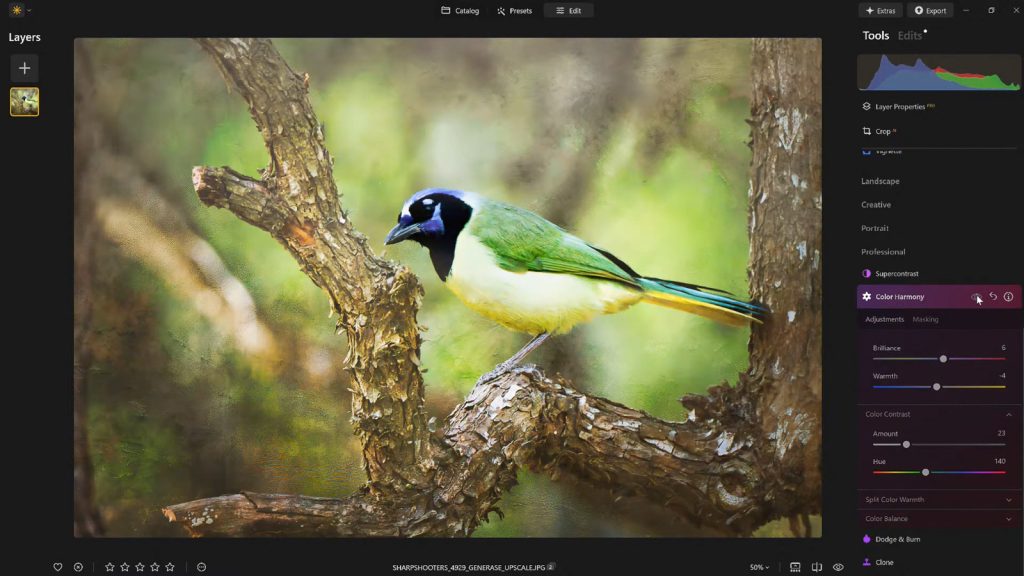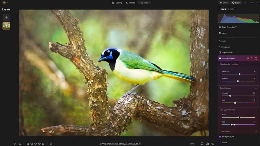 Color Harmony isn’t about drastic transformations. Instead, it introduces nuanced control over how colors interact across an image. With adjustments for Brilliance, Warmth, Color Contrast, Split Warmth, and Color Balance, the tool is designed to help photographers fine-tune their work with precision.